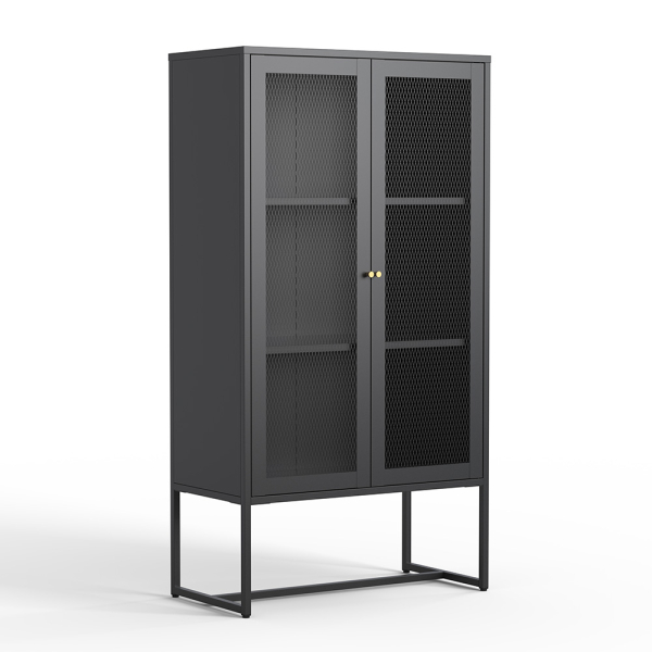 Mit der Vitrine Athens von Milton & Oldbrook verleihen Sie Ihrer Einrichtung einen coolen Touch. Diese schwarze Vitrine hat 2 Meshtüren und ist komplett aus Stahl gefertigt. Die Kombination aus Mesh und Stahl sorgt dafür, dass dieser Schrank perfekt in eine industrielle Einrichtung passt. Der Schrank hat 2 Einlegeböden hinter den 2 Türen, so dass Sie insgesamt 3 Ebenen haben. Diese stilvolle Vitrine kann in verschiedenen Räumen aufgestellt werden und lässt sich problemlos mit anderen Möbeln kombinieren. Die Vitrine Athen hat eine Breite von 80 cm, eine Tiefe von 40 cm und eine Höhe von 150 cm.