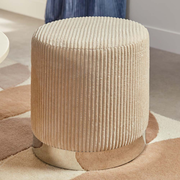 Dieser Cordhocker Roberte ist ein eleganter Eyecatcher, der jedem Interieur Klasse verleiht. Der weiche Cordbezug fühlt sich angenehm an und vermittelt ein einladendes Gefühl, während die silberne Metallbasis für einen stilvollen Kontrast sorgt. Perfekt als zusätzliche Sitzgelegenheit oder dekoratives Element im Wohn- oder Schlafzimmer.