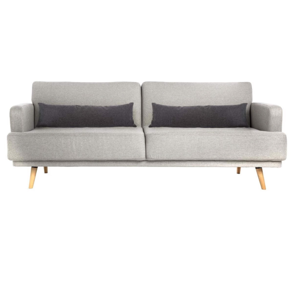 - Skandinavischer Charme: Die Beine aus Buchenholz verleihen dem grauen Schlafsofa einen luftigen, modernen Touch.
