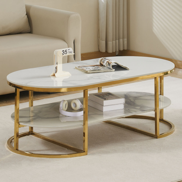 Der Evora Couchtisch kombiniert weiße Marmoroptik, goldene Beine und eine glänzende Oberfläche zu einem luxuriösen Gesamtbild, das jedes Wohnzimmer sofort aufwertet. Ein modernes, zeitloses und vielseitiges Design, ideal für Hotel-Chic, moderne, glamouröse oder minimalistische Interieurs.