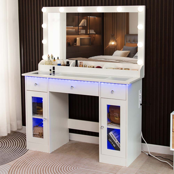 - Großzügiger Stauraum: Der Schminktisch bietet 3 Aufbewahrungsfächer, 3 Schubladen und 2 Glastüren zur Aufbewahrung von Make-up und Hautpflegeprodukten.