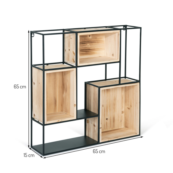 Mit dem Nunzio Wandregal von Baytex können Sie Ihre Lieblingssachen ins Rampenlicht stellen. Das Regal ist aus Metall und MDF gefertigt und hat 3 Holzböden. Das quadratische Wandregal kann in verschiedenen Räumen aufgestellt werden, um Platz für Dekorationen, Fotos, Bücher und andere Gegenstände zu schaffen. Die Schrankwand hat einen zeitgenössischen Look, der es Ihnen erlaubt, sie mit verschiedenen Möbeln und mehreren Einrichtungsstilen zu kombinieren. Das Wandregal Nunzio hat eine Länge von 65 cm, eine Breite von 15 cm und eine Höhe von 65 cm.