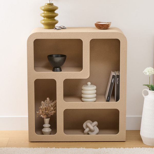Bringen Sie Stil und Funktionalität zusammen mit dem beigen Maelis Regal. Dieses moderne Möbelstück von Eazy Living mit 4 offenen Regalböden hat eine spielerische Anordnung. Ideal zur Präsentation von Büchern, Pflanzen oder dekorativen Objekten, sowohl im Wohnzimmer als auch im Schlafzimmer. Die Kombination aus Linien und abgerundeten Ecken verleiht dem Maelis Regal ein zeitgemäßes und warmes Aussehen.