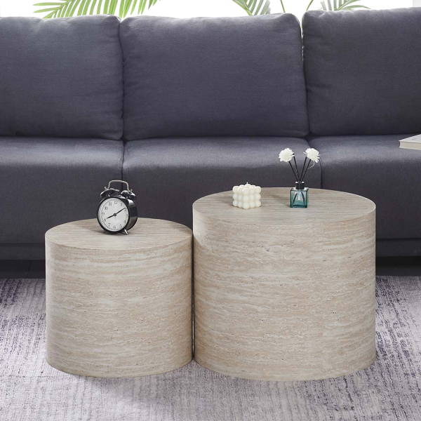 - Vielseitig einsetzbar: Verwenden Sie sie zusammen als Set oder einzeln als Beistelltische. Dank der sanften Travertinfarbe können Sie die Tische problemlos miteinander kombinieren.