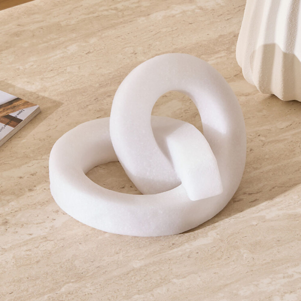 Wählen Sie dieses zeitlose Deko-Highlight von Eazy Living und lassen Sie Ihren Raum erstrahlen! Bringen Sie mit der besonderen Liora Skulptur in Form von zwei ineinander verschlungenen Ringen einen Hauch Kreativität in Ihr Zuhause. Mit ihrem einzigartigen Design und den neutralen Farbakzenten ist dieses Kunstobjekt die ideale Ergänzung für ein modernes, minimalistisches oder skandinavisches Interieur.