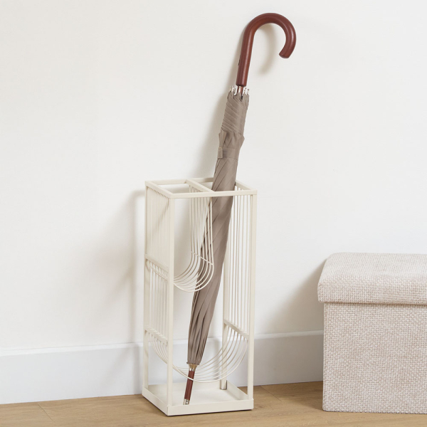 - Regenschirmständer aus Stahl: Hält Regenschirme ordentlich zusammen und verhindert nasse Böden.