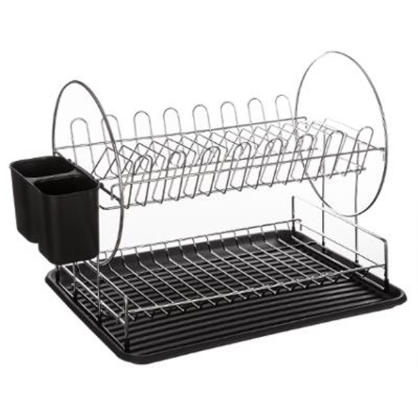 Teller, Tassen und Besteck Waschen ein Stück Kuchen mit dieser funktionellen Abtropfgestell Eazy Leben. In Oriane Abtropffläche mit 2 Ebenen können Sie die Gerichte zum Trocknen abtropfen lassen. Die smarte Küche Organisator hat Besteckschublade und abnehmbare Tropfschale . Das Gestell besteht aus Metall und Polypropylen, und kann leicht auf der Theke angeordnet werden.