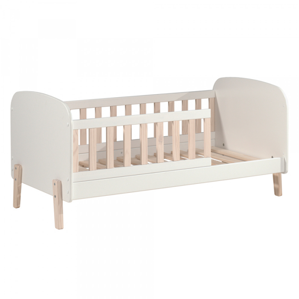 Le lit d'enfant Lux 70x140 cm apporte une atmosphère chaleureuse dans la chambre des enfants. Le lit pour enfants est fabriqué en MDF laqué blanc et présente des extrémités de tête et de pied arrondies. Le lit d'enfant blanc repose sur 4 pieds en bois massif. Le lit pour enfants a des barrières hautes pour assurer la sécurité de votre enfant.