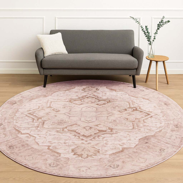 - Dimensions : Avec son diamètre généreux de Ø200 cm, ce tapis devient un véritable point focal – idéal sous une grande table à manger ou comme élément central d’une chambre spacieuse.