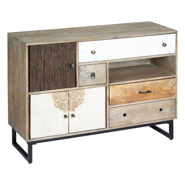 Ajoutez une touche unique à votre intérieur avec le buffet Sedan, un meuble unique au style ethnique et à l'espace de rangement pratique. Ce buffet combine des détails rustiques avec un design ludique, y compris différentes couleurs de tiroirs, de poignées et d'accents. Le mélange de matériaux et de motifs fait de ce meuble d'Eazy Living un véritable accroche-regard dans votre intérieur.