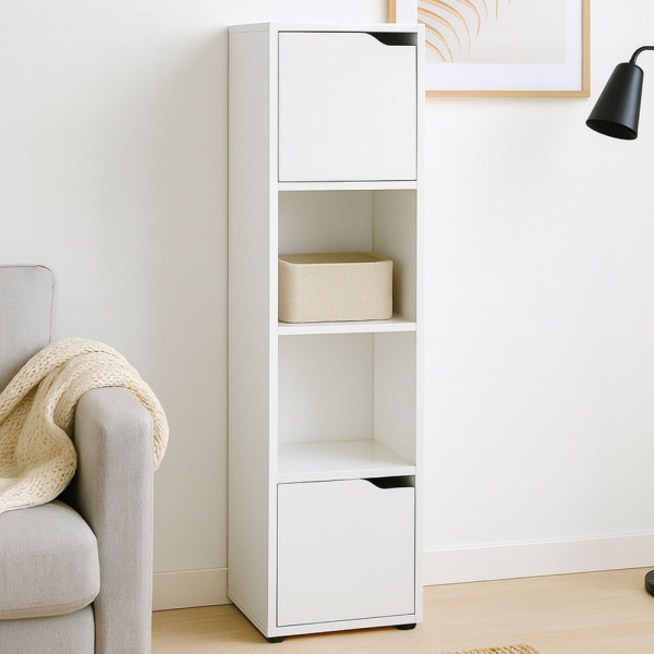 - 4 compartiments pratiques : Deux niches ouvertes et deux compartiments fermés avec découpe moderne, parfaits pour combiner rangement visible et dissimulé.