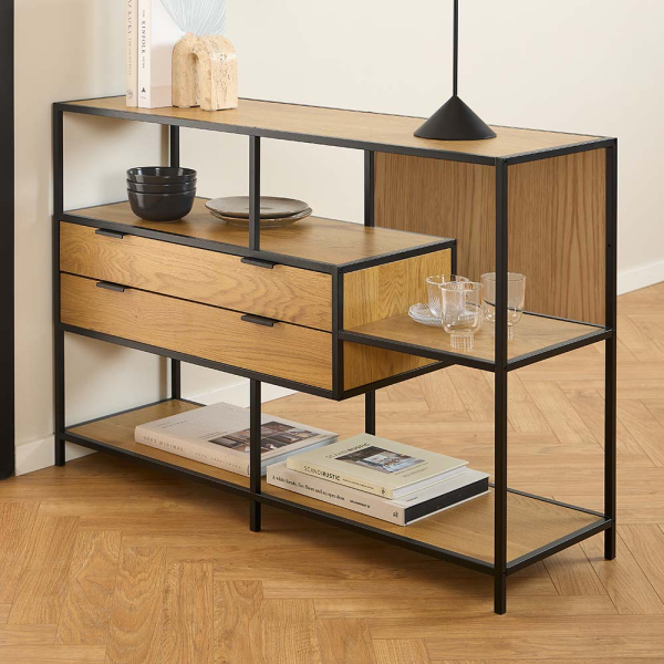 Smuk Armoire à Étagères avec 2 Tiroirs Chelsea Chêne - Noir