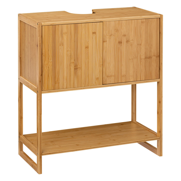 Avec le meuble à vasque Léonois d'Eazy Living, vous créerez une touche chaleureuse dans la salle de bains. Le meuble bas pour lavabo est fabriqué en bambou et MDF et comporte 2 portes et un évidement pour un lavabo. Au bas de l'armoire, vous avez 1 étagère sur laquelle vous pouvez ranger des paniers de rangement contenant des serviettes, des flanelles et du papier toilette. Vous pouvez facilement combiner le meuble de salle de bains Eazy Living avec d'autres meubles de salle de bains grâce à son design élégant et minimaliste. Le meuble Léonois a une largeur de 70 cm, une profondeur de 33,5 cm et une hauteur de 80 cm.