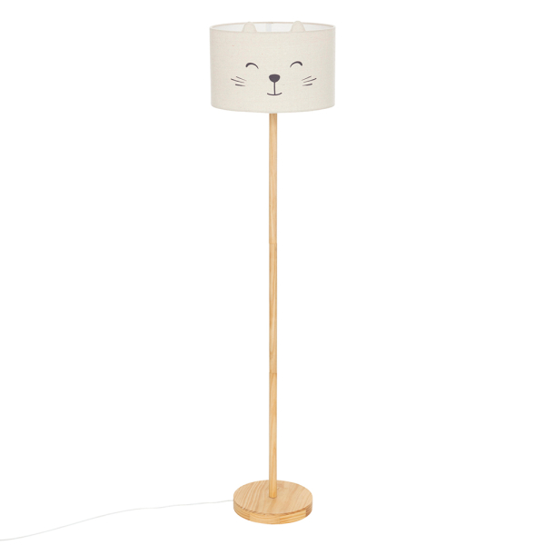Met de Chat vloerlamp van Eazy Living zorg je voor een leuke toets in de kinderkamer of speelkamer. Deze leuke kinderlamp heeft een lampenkap van polyester met een kattengezichtje en kattenoortjes. De lamp staat op een voet van dennenhout. De katvloerlamp verspreidt een zacht licht, en zorgt voor warmte en gezelligheid. De witte kindervloerlamp heeft een diameter van 36 cm en een hoogte van 152 cm. De Eazy Living kinderlamp wordt exclusief lichtbron geleverd.