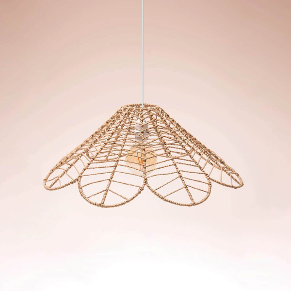 Zorg voor een mix van natuur en romantiek in je interieur met de Rania hanglamp van Eazy Living. De hanglamp met bloemvorm heeft een ijzeren frame en is daarrond versierd met een touw. Het touw zorgt voor een natuurlijk tintje en de opengewerkte bloemvorm zorgt voor een zacht, mooi licht. De hanglamp heeft een diameter van 58 cm en een hoogte van 22 cm. De hangende lamp heeft een kabel van 90 cm lang. De Rania hanglamp kan je in je woonkamer, eetkamer, hal of slaapkamer plaatsen en zorgt voor een botanische sfeer in je interieur.