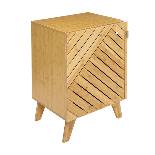 Het Méline nachtkastje van Eazy Living zorgt voor een natuurlijke toets in jouw interieur. Het nachtkastje met deur is gemaakt van MDF en bamboe, en is uitgerust met 1 legplank. Het Eazy Living kastje kan je naast nachtkastje ook gebruiken als bijzetkastje in jouw woonkamer of kantoor, of als badkamerkastje om handdoeken en andere badkamerspullen een plaatsje te geven. Het houten Méline nachtkastje heeft een lengte van 45 cm, een breedte van 38 cm en een hoogte van 70 cm.