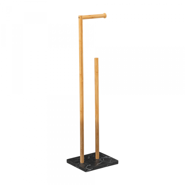 De Corben toiletrolhouder is een handig accessoire voor in jouw badkamer, toilet of gastentoilet. De zwarte toiletrolhouder bestaat uit een marmerlook voet van polyresin en 2 houders van bamboe. De toiletrolhouder past dankzij het stijlvolle design in verschillende badkamers en toiletten, en zorgt voor voldoende opbergruimte voor enkele toiletrollen. De Corben heeft een breedte van 22 cm, een diepte van 18 cm en een hoogte van 78 cm.