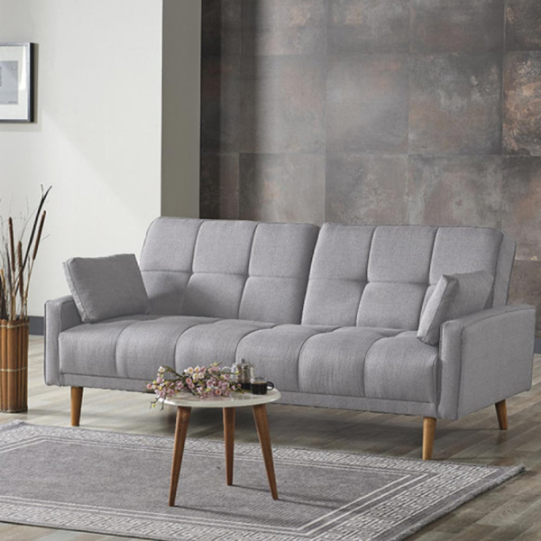 De grijze Minnie bank van Stozy is niet alleen een zitbank, maar hij kan ook gebruikt worden als slaapbank! De grijze slaapbank heeft een stoffen bekleding gemaakt van polyester en staat op houten poten gemaakt van MDF. De slaapzetel heeft een getufte bekleding waardoor het voor een tikkeltje luxe zorgt in jouw interieur. Het sofabed heeft 3 zitplaatsen en heeft in totaal 3 posities. Je kan de zetel rechtop, gekanteld of als ligbed gebruiken. De Minnie 3-zitsbank is ideaal voor wanneer je een extra slaapplaats nodig hebt voor gasten.